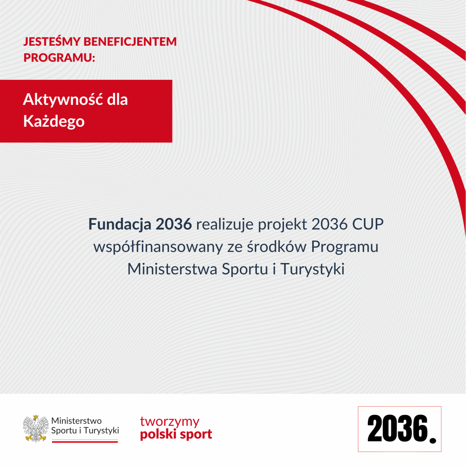Fundacji 2036 od początku przyświeca jedna misja: pokazać młodym zawodnikom, że sport może być ekscytującą przygodą. Jesteśmy twórcami strategii rozwoju polskiego kolarstwa, która już przynosi wymierne efekty. Organizujemy Sprint Rewolucję w szkołach, dzięki której identyfikujemy talenty i zarażamy młodych pasją do ruchu. Najlepszych wspieramy w ramach TEAM 2036, pomagając im w dalszym rozwoju sportowym.